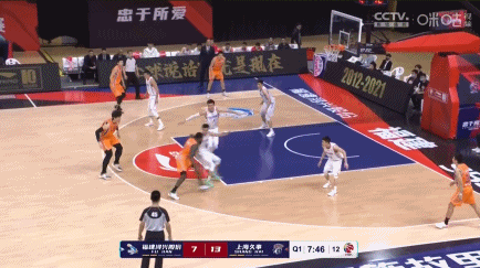 CBA常规赛第10轮,上海队对阵福建队。王哲林再战旧主手下不留情,首节还剩7分42秒,王哲林弧顶接球虚晃一枪,晃开了防守队员,一记三分出手命中。
