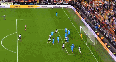 伤停补时第5分钟,瓦伦西亚前场左路任意球传中,雨果-杜罗头球破门,帮助瓦伦西亚3-3绝平马竞。