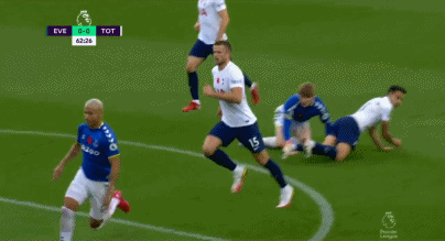 第68分钟,埃弗顿开出角球后禁区内混战,汤姆-戴维斯16码处射门被挡出底线。第69分钟,理查利森禁区内挑球打在戴尔的手臂上,但戴尔的手臂是背着紧贴身体,理查利森要点球引起热刺球员不满,理查利森和罗梅罗顶牛各领到黄牌。第70分钟,格雷12码处射门被挡出,随后汤姆-戴维斯18码处射门,洛里扑到球。