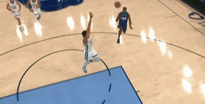 比赛第四节,布里奇斯送上一记离谱的空接砸扣。