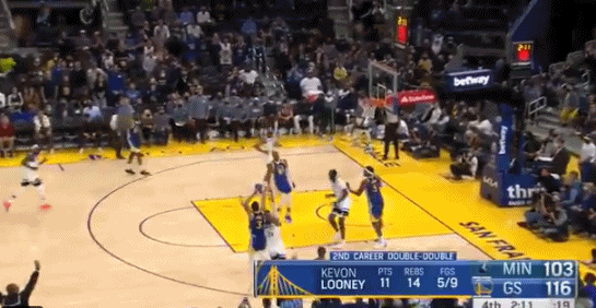 勇士队今日主场力克森林狼。本场比赛,维金斯面对唐斯上演了两记十佳球级别的隔扣。