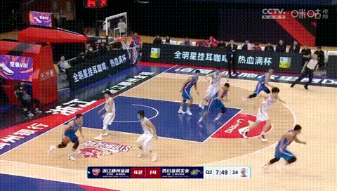 就在四川队处于颓势之时,朱松玮在第二节结束前7分44秒接到老将韩硕的秒传助攻,上演单臂灌筐肆虐篮筐的好戏,一扫球队此前的阴霾。这一球也使此前顺风顺水的浙江队不得不申请暂停,试图阻止四川队反击的势头。