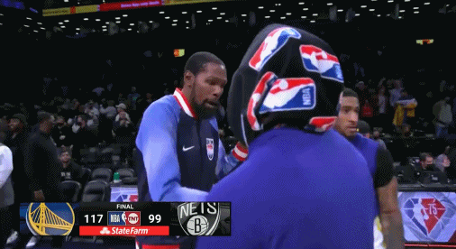赛后,两位曾经并肩作战的队友——杜兰特和库里拍手、拥抱致意,两人耳语了一番。