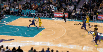 黄蜂主场迎战步行者,第三节拉梅洛-鲍尔上演精彩助攻。
