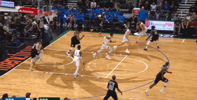 比赛第四节,雄鹿失误,雷霆反击前场,基迪给贝兹利送出空接传球,字母哥后场冲刺过来,三大步垫步起飞,长臂一挥将这个几乎必进的空中接力钉板大帽拦截。