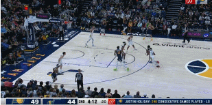 你可能在想这特么是个什么战术,但殊途同归:多名防守球员都去围库里了。