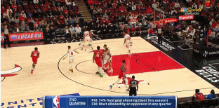 而且马克西的篮下命中率是勒布朗级的69%,他的招牌动作:在起跳前他甚至已经出手。往往在护筐手刚搞清楚他要干吗之前他就把球投出去了: