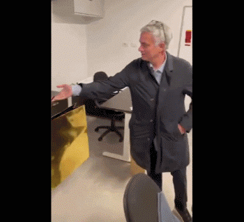 在吉安穿好鞋后,穆里尼奥又拉开其背后的椅子,并拉着吉安指了指摄像头,狂人要吉安跳段舞。吉安先是害羞地用手遮住面容,然后还是对着镜头来了段尬舞。