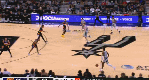 末节比赛进行到9分多钟时,马刺的进攻机会,朗尼-沃克运球到前场,在左侧转身过掉卡梅隆-佩恩冲向篮下完成扣篮。