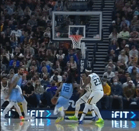 NBA常规赛,灰熊客战爵士。比赛中,莫兰特再次挑战爵士高塔。