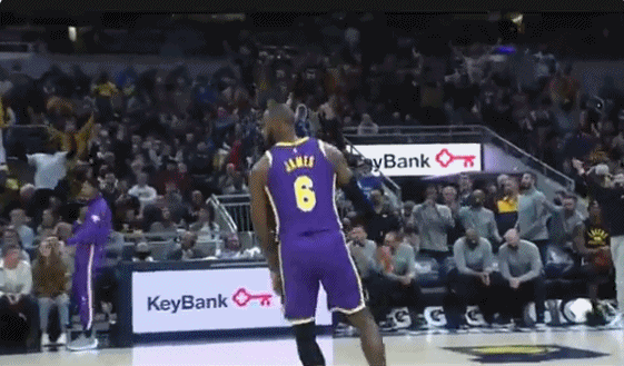 湖人vs步行者,詹姆斯关键时刻轰进三分。