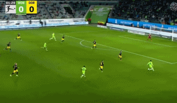 下半场比赛刚开始,多特蒙德获得绝佳机会,布兰特右路传中,埋伏在后点的马伦打门被封堵,舒尔茨跟进一脚爆射,皮球击中立柱。第51分钟,沃尔夫斯堡踢出快速反击,弗兰西斯推进到大禁区弧顶处,获得起脚空间,随后踢出了一脚质量极高的兜射,皮球被门将扑出。