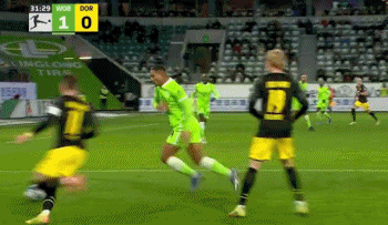 第61分钟,沃尔夫斯堡右路获得位置不错的任意球机会。阿诺尔德把球吊入禁区后,布鲁克斯高高跃起头球攻门,皮球稍稍高出横梁。第72分钟,多特蒙德做出换人调整,哈兰德换下马伦。第79分钟,布兰特左路传中,哈兰德腾空打门得分,1-3,多特蒙德大比分领先。
