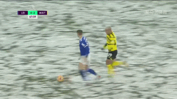 在下半场中,雪情明显变大,草坪变成了白茫茫一片。由于此役没有准备颜色鲜艳的雪地用球,下半场比赛的观赏性大幅度下降。61分钟丹尼斯中路强行突破后单刀破门,沃特福德将比分追为2-3。在丹尼斯破门时,我们甚至很难看到皮球在哪。