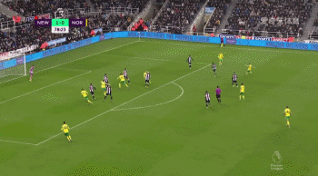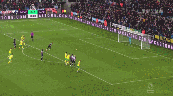 61分钟时,纽卡利用点球取得领先。在角球防守中,诺维奇球员禁区内抬起手臂手球,主裁看过VAR后吹罚点球。威尔逊主罚的点球被门将扑了一下后,仍然弹入网窝中。