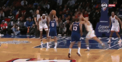 哈登最近两场比赛一共28投8中,命中率跌破三成,手感十分挣扎。他仍在适应没有欧文的篮网,摸索自己的节奏。本场比赛开局,哈登倒是早早开火,在与杜兰特快攻配合扣篮得手后,连飙两记后撤步三分,5分58秒又持球突破篮下并制造富尼耶犯规。