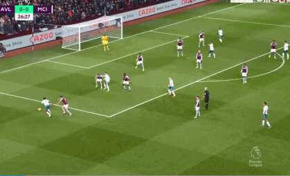 第27分钟,斯特林左路带球杀入禁区底线附近后倒三角回传,鲁本-迪亚斯外围中路不停球直接左脚迎球爆射轰出一记世界波,曼城率先打破场上僵局,1-0!