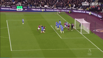 89分钟时,布莱顿用一记精彩绝伦的倒挂金钩扳平比分。兰普蒂右路突破传中,莫帕在禁区中路背身倚住后卫之后,完成了精彩的倒勾射门。在莫帕射门时,西汉姆门将法比安斯基完全没有做出扑救反应。