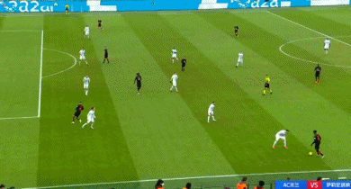 上半场比赛第5分钟,莱奥左路带球推进到底线后倒三角回敲,凯西迎球推射破门,米兰1-0领先。