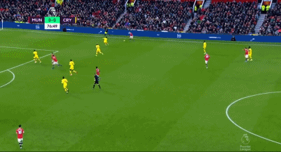 第77分钟,格林伍德禁区内带球吸引防守后回做,弗雷德禁区前沿右脚射门,球飞入左上角,曼联1-0领先。