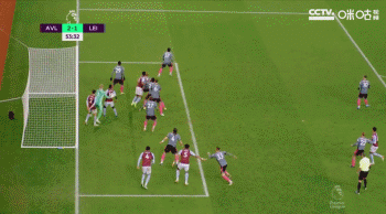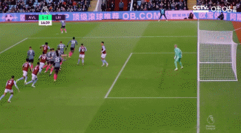 54分钟时,阿斯顿维拉2-1反超比分。麦金恩右侧角球传中,孔萨后点高高跃起头球射门。皮球击中门将小舒梅切尔腿部后,折射飞入网窝中。