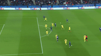 38分钟姆巴佩中场左侧穿裆过人横传,梅西禁区弧内左脚兜射,皮球飞入球门左下死角。3-0,巴黎锁定胜局!