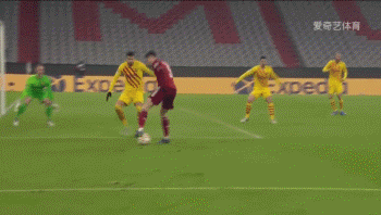 33分钟拜仁首开纪录,莱万禁区左侧面对皮克连续晃动后挑传,穆勒小禁区右侧头球吊射,1-0,拜仁取得领先!