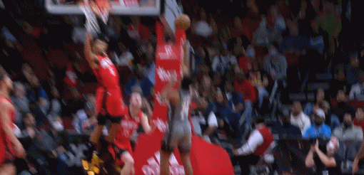 次节,篮网队新秀托马斯上篮,小肯扬-马丁拍马赶到,高高跃起,单手将这球无情拒绝。