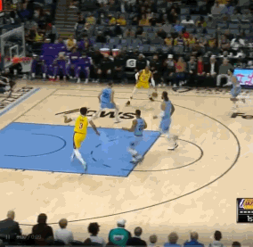 第一节比赛,湖人前锋塔克从三分线外切入,接到队友威少的传球后,丝毫不惧坐镇内线的亚当斯,直接起飞单手劈扣得手!