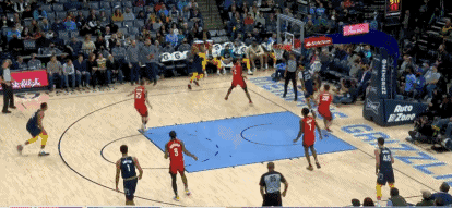 第二节还剩9分08秒时,蒂尔曼完成了一次精彩的隔人暴扣,当时他接球后杀进内线,无视萨古的补防,飞身完成隔人暴扣,打成2+1!