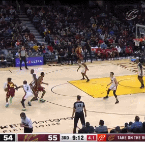 比赛第三节还剩下9分多钟时,骑士进攻回合,加兰德分球给到左侧,奥科罗晃起洛瑞后出手三分,皮球高打板命中。