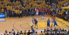 这是2014年季后赛对阵快船的第三场比赛,终场前7.8秒,库里在右侧接到队友边线发球,他向左侧运球试图摆脱保罗——保罗比他矮但更强壮——保罗的左臂始终挡在库里身前,他不得不佯装突破,然后后撤步寻求出手空间,即便如此,他还是没法摆脱保罗的左臂,他的确完成了出手,但力量的缺失让他在出手的时候失去平衡,他摔倒在地,那是一记三不沾。