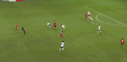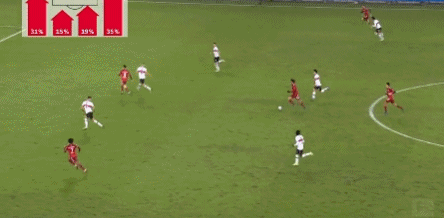 第40分钟,萨内中路带球长驱直入,禁区前冷静分边,格纳布里禁区左侧接球顺势右脚兜射,皮球划出一道美妙弧线破门,0-1!半场结束,拜仁客场1-0暂时领先。
