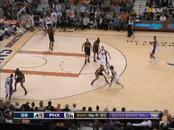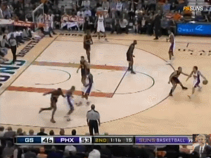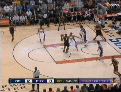 第一节比赛,纳什和格兰特-希尔把勇士的防线拆的七零八落,好在蒙塔-埃利斯通过单打死咬比分,勇士没有让分差拉大到两位数。