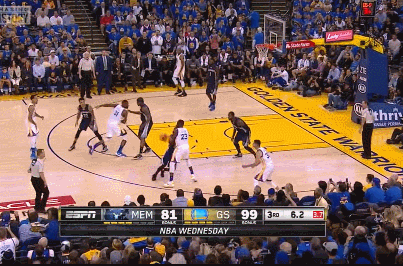 第三节还剩24秒,格林把发牌的机会让给了利文斯顿,他们开始疯狂掩护,这个回合,勇士说啥也要把球交给库里。