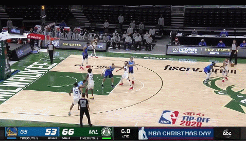 前12分钟,两支球队加起来只出手了一次三分球(就是库里开局的打铁)。没办法,那个时代就是这样的。