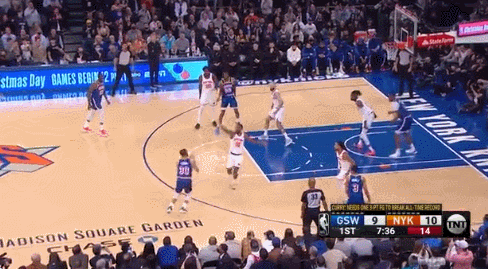 5个月之后,库里在米勒和雷阿伦的注视下,成为了历史三分王。勇士战胜了尼克斯,继续稳坐联盟第一。