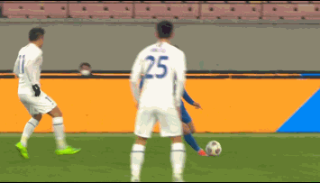第7分钟,阿德里安右路摆脱后在弧顶前沿左脚远射,邵镤亮将球按在身下。