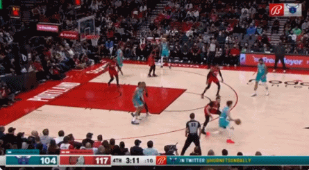 黄蜂客场挑战开拓者,拉梅洛-鲍尔第四节上演精彩进球。