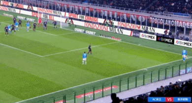 上半场比赛第5分钟,泽林斯基角球传中,埃尔马斯前点头球后蹭破门,那不勒斯1-0领先米兰。