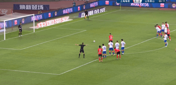 第88分钟,山东从上海海港买来的后卫石柯也出现严重的失误,在禁区内解围导致手球送点,奥斯卡主罚点球太过追求角度,直接偏离了球门。