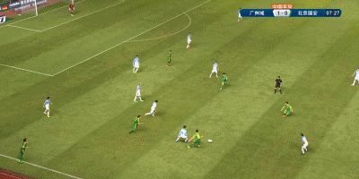 开场3分钟,卡尔多纳接队友直塞面面对国安2名夹防球员,一个急停成功摆脱,然后稍作调整兜射破门,1-0,广州城反击犀利,成功造成破门。