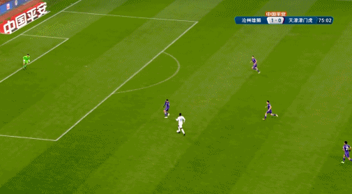 第75分钟,沧州雄狮前场打出配合,奥斯卡吸引三名防守队员后分边,谢鹏飞插上再给到门前,奥斯卡轻松打门得手,沧州雄狮2-0领先津门虎。