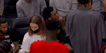 火箭vs雄鹿,在第二节一次暂停期间,火箭布鲁克斯与伍德在板凳席发生争吵。