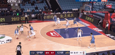第三节一上来连中2记三分后,林书豪又与队友形成了有效配合。他在高位组织传给了李慕豪,后者内传内将球交到篮下,范子铭接球起飞双手暴扣。