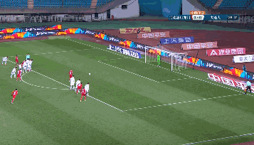 半场补时第2分钟,陶强龙主罚距离球门26.5米任意球,可惜球击中横梁弹出底线。