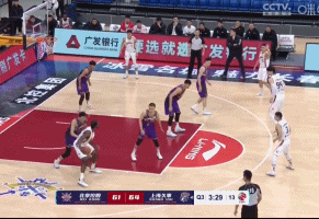 第三节最后3分33秒,冯莱获得背打机会,只见快速他转身到篮下,王少杰防守不及,冯莱完成隔人劈扣。