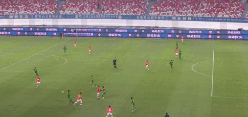 第43分钟,廖力生左路边线附近任意球传到禁区后点,杨立瑜小禁区右角处头球攻门没有顶上力量。