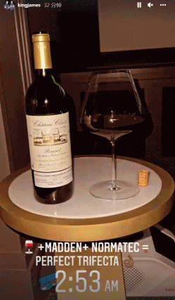 詹姆斯更新个人社媒,晒出了自己边喝红酒边玩游戏边放松身体的动态,并配文写道:“🍷+游戏+放松=完美的一石三鸟👌🏿””