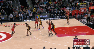 这就是高雅的艺术:借掩护转身,看似犹豫的运球让诺埃尔相信他可以及时回到贾文特-格林面前,但突然的加速又降诺埃尔引了回来,这就迫使防守离开了处于底角的球哥,德罗赞最后的传球迷惑了托平,让他判断错了方向。